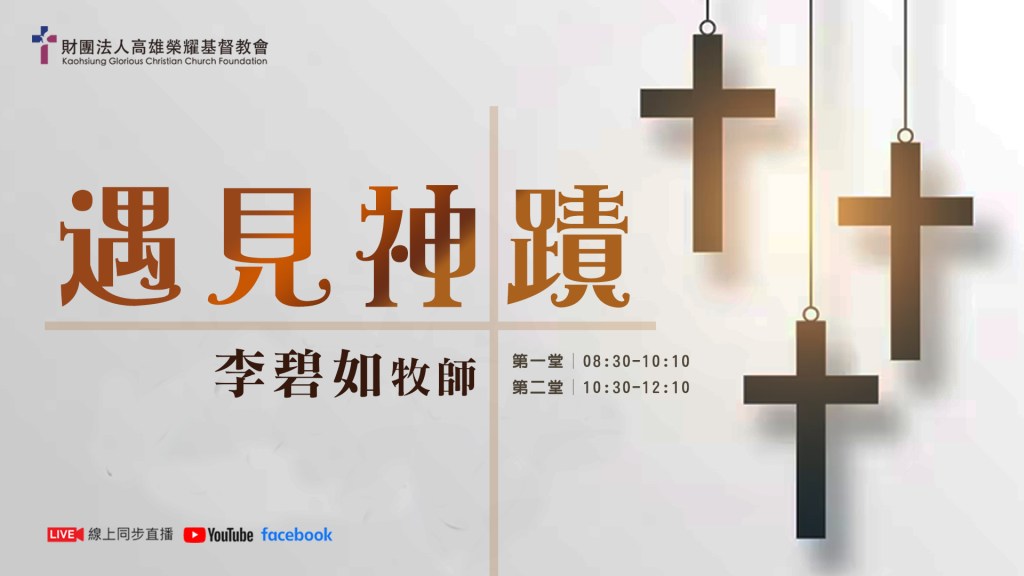 主日講道 《遇見神蹟》 分類: hsiny0920 於 2023-04-28 一、信而順服 瞎眼得醫治 (約9:1-11) 痲瘋得痊癒 (王下5:1-14) 二、活在神蹟中 身心的回轉 (得1:6-7) 正確的抉擇 (得1:16-17) 美好的結局 (得4:17) 分享此文: 分享到 X(在新視窗中開啟) X 分享到 Facebook(在新視窗中開啟) Facebook 喜歡 正在載入... 相關