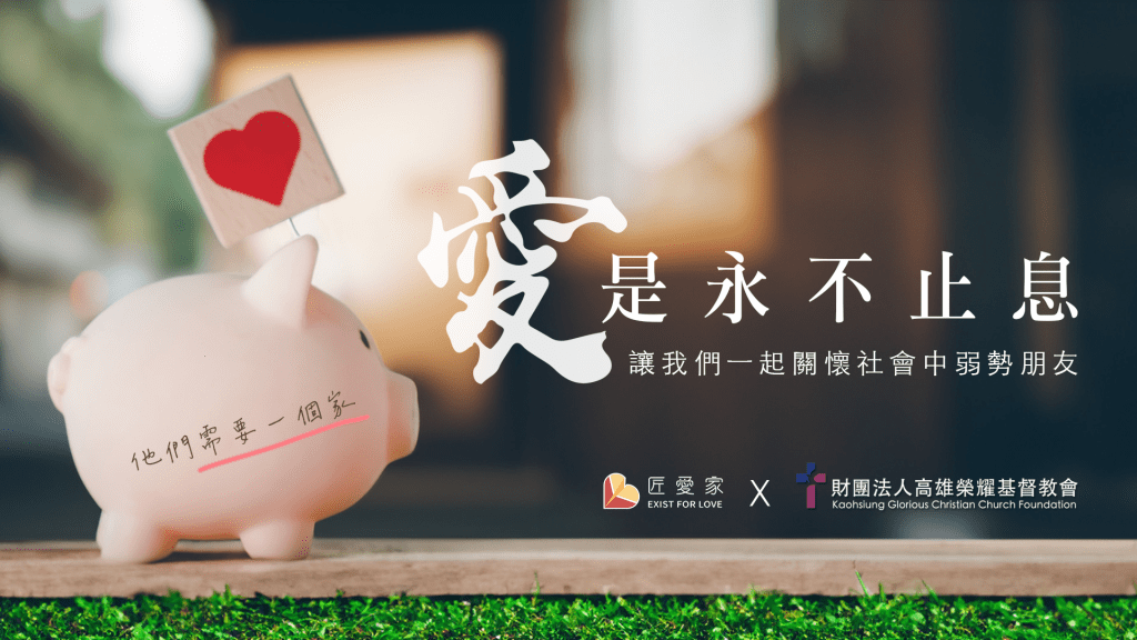 榮耀小豬要再出發囉,將神的愛傳遞到每個需要的角落。本次小豬活動奉獻對象為【匠愛家園】一個為社會中身心障礙、單親家庭、孤兒、老人、重症病人……等,這些『被動式落難者』能有一個家庭的生活,創造個人自我價值的認同,給予合適的工作崗位。