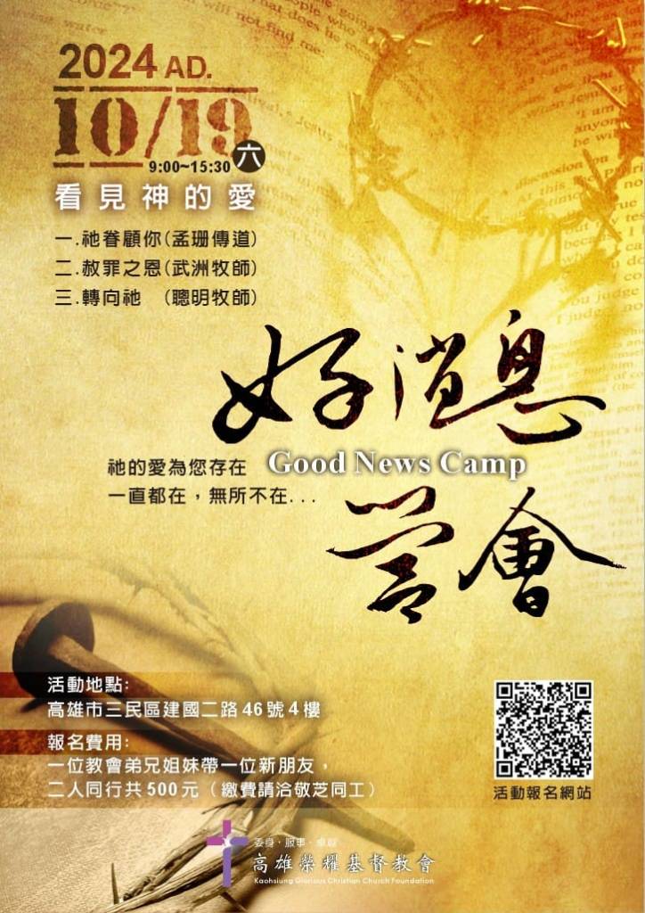 一位教會弟兄姊妹帶一位新朋友,二人同行共500元(繳費請洽敬芝同工)
